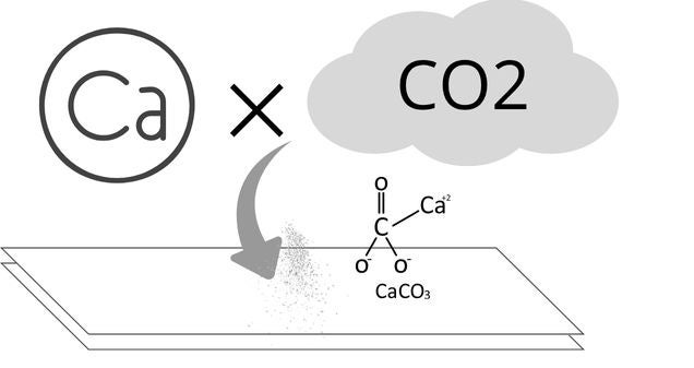 通常、紙の筆記性や白色度を上げるために炭酸カルシウムを使用しますが、「カーボペーパー」はこの素材をすべて、CO2活用炭カルに置き換えました。