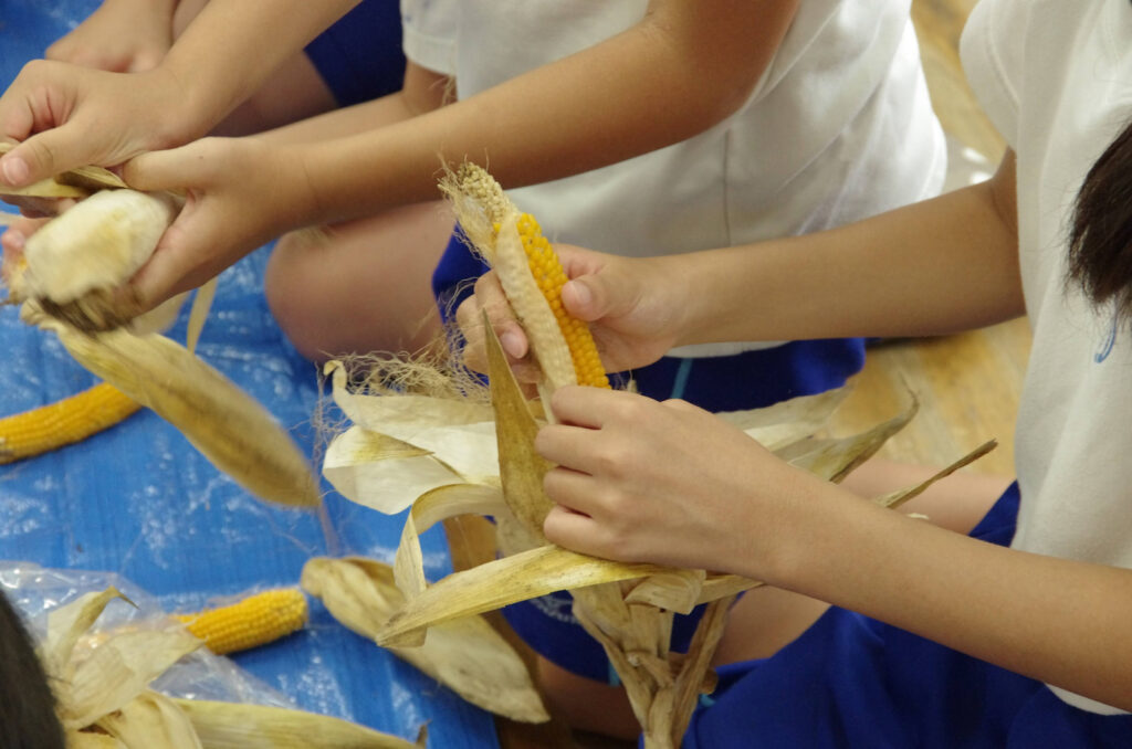 児童たちは春にトウモロコシを種から育て、夏に収穫。その後、ポップコーンへのパッケージデザイン、販売までを自ら企画・実行しました。